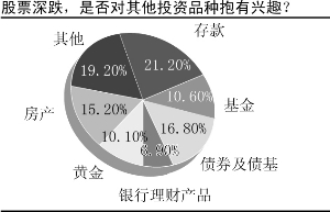 当然,市场的调整对于股民的投资意向产生了一定的影响。本次调查显示,在其他的投资品种及被动投资——存款中,存款目前仍以21.2%的占比高居投资意向榜首,而紧接其后的投资品种分别是债券类产品、房产、黄金、银行理财产品和基金。