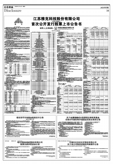 江苏雅克科技股份有限公司首次公开发行股票上市公告书