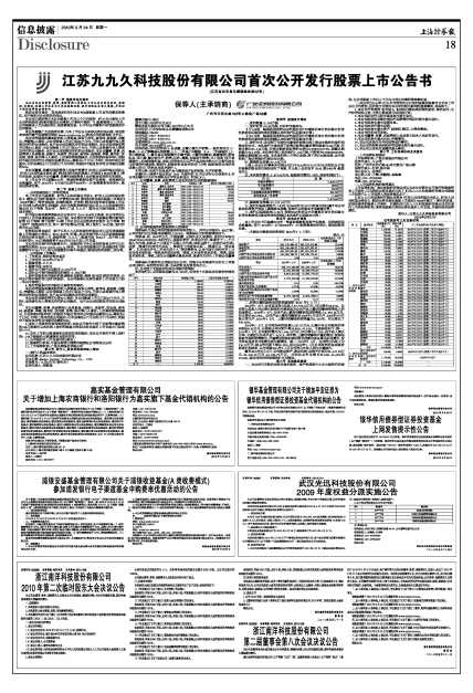 江苏九九久科技股份有限公司首次公开发行股票上市公告书