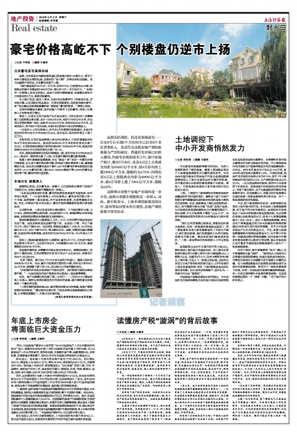 不过,眼下新政调控也在进一步影响着开发商在土地市场内的行动。针对此次土地增值税清算,汉宇地产的分析师就指出,虽说很多开发商经历了2009年的热销后资金显得充裕,未必有降价卖房以回收资金的压力,但由于土地增值税额度大(30%-60%),进行土地增值税清缴,特别是对于销售量超过项目85%的楼盘和销售周期超过3年的项目进行及时的清缴,对不少开发商来说会产生巨大的资金压力。不过,即使土地增值税能够给开发商造成资金压力,也不等于开发商一定要通过降价销售来缓解,如开发商手中剩余的资金依然可以维持正常运营,那么对其来说只是不能在市场低迷时期吸纳新的土地为下一轮发展做储备。