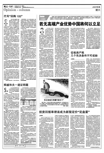 因此,完善新股发行定价的市场约束机制,就是要在体现投资者意志的强有力的市场监管机制和体现市场逻辑的价格发现评估机制的共同努力下,使投资回报率准确而有效地定位在公平合理的价格位置上,成为真正看得见摸得着的定盘星。