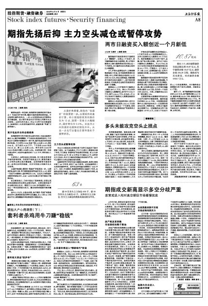 随着尾盘的一阵急跌,股指期货也随着现货市场走出了“先扬后抑”的行情,整体市场的弱势依然明显。不过值得注意的有两点:一是15时现货收盘过后期指出现企稳迹象,显示期市资金对后市的独立判断并未太过悲观;二是持仓排名显示,空头主力昨日加仓幅度较小,国泰君安三天来首次减持空单,或意味着“空袭”力度将减小。
