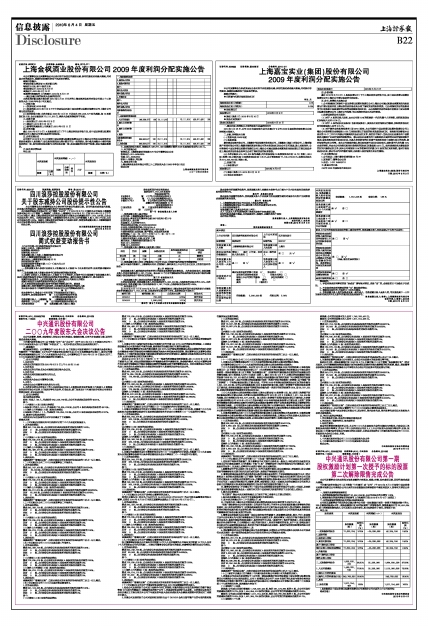 七、实施送转股方案后,按新股本438,671,492股摊薄计算的2009年度每股收益为0.33元。