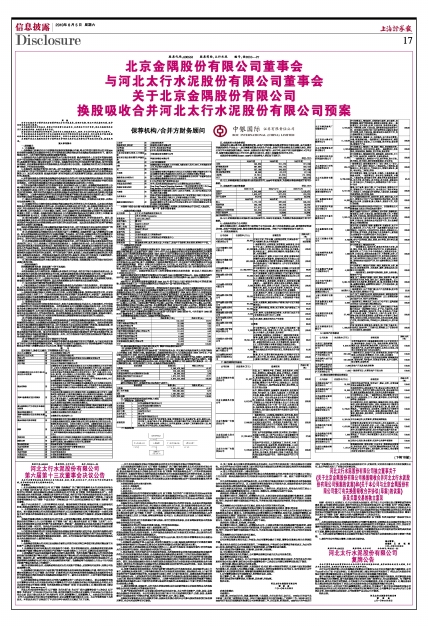 (五)本次换股吸收合并预案已经太行水泥第六届十三次董事会、金隅股份第二届八次董事会审议通过。在与本次换股吸收合并相关的审计及盈利预测工作完成后,太行水泥、金隅股份将另行召开董事会审议与本次换股吸收合并相关的其他未决事项,并编制和公告换股吸收合并报告书,一并提交各自股东大会审议。经审计的历史财务数据以及经审阅的盈利预测数据将在换股吸收合并报告书中予以披露。