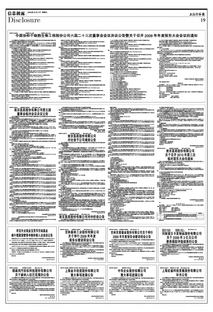 中源协和干细胞生物工程股份公司六届二十三次董事会会议决议公告暨关于召开2009年年度股东大会会议的通知