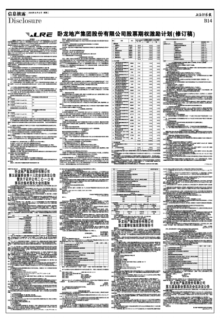 (七)、鉴于公司2010年实施了每10股派发现金红利1元(含税)的利润分配方案及每10股转增8股的资本公积金转增股本方案,对“特别提示第2项、第三项”、“ 三、股票数量、来源和种类中的(一)拟授予股票期权的数量”、“ 五、激励对象的股票期权分配情况”、“ 七、股票期权的行权价格和行权价格的确定方法中的(一)首次授予的股票期权”及“十三、其他中的参数选取情况说明”的相关内容进行了调整,调整后的内容请详见《卧龙地产集团股份有限公司股票期权激励计划(修订稿)》。
