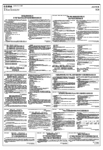 证券代码:600896 证券简称:中海海盛 编号:临2010-012
