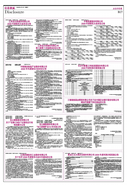公司2009年度股东大会的日期及原定其他会议事项不变。