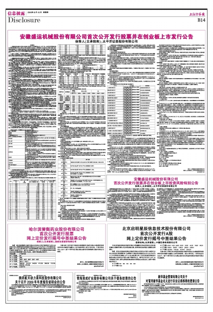 安徽盛运机械股份有限公司首次公开发行股票并在创业板上市发行公告