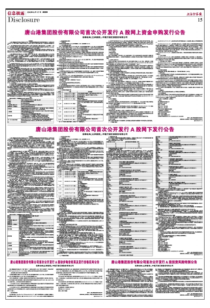 有关本次发行网上发行的相关规定,请投资者参阅2010年6月17日(T-1日)刊登在《中国证券报》、《上海证券报》、《证券时报》和《证券日报》上的《唐山港集团股份有限公司首次公开发行A股网上资金申购发行公告》。