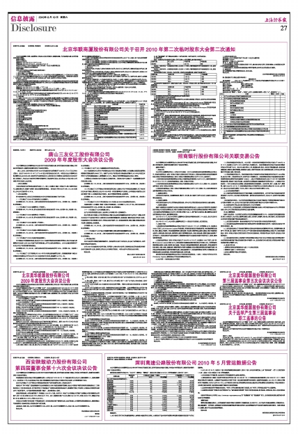 深圳高速公路股份有限公司2010年5月营运数据公告