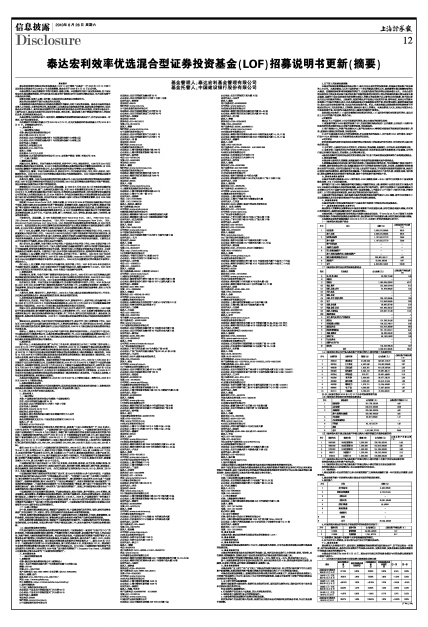 泰达宏利效率优选混合型证券投资基金(LOF)招募说明书更新(摘要)