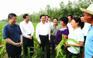 图为胡锦涛到洛阳市孟津县平乐镇察看玉米长势。 新华社 图