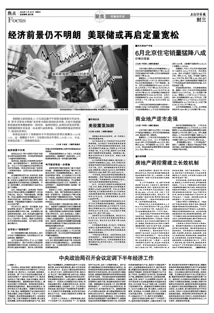 中央政治局召开会议定调下半年经济工作(上接封一)