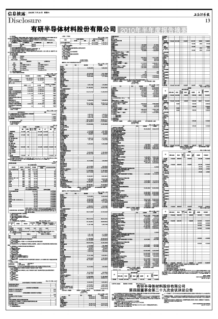 有研半导体材料股份有限公司2010年半年度报告摘要