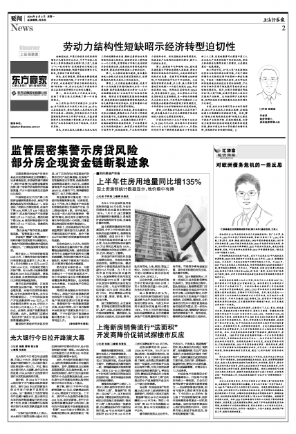统计显示,4月份房贷新政策出台之后,上海的住房开发贷款关注类贷款总量呈逐月上升之势,4至6月分别增加1.72亿元、6.32亿元和14.04亿元,开发商还贷能力开始下降。而75%的土地储备贷款都是在2009年以后发放的,拿地成本较高,未来将面临更大的偿还压力和抵押物减值风险。