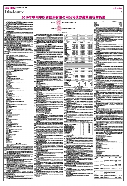 3、《2010年嵊州市投资控股有限公司公司债券募集说明书摘要》