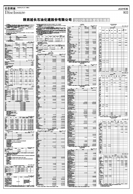 陕西延长石油化建股份有限公司2010年半年度报告摘要