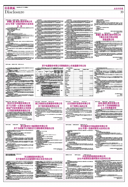 证券代码:000415 证券简称:汇通集团 公告编号:2010-033