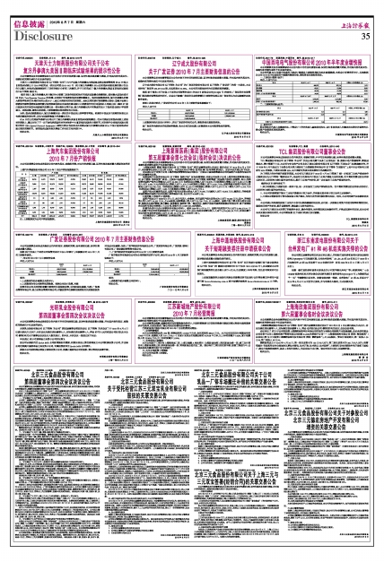 根据《关于加强上市证券公司监管的规定》(2010年修订),现披露公司2010 年7 月的主要财务信息。