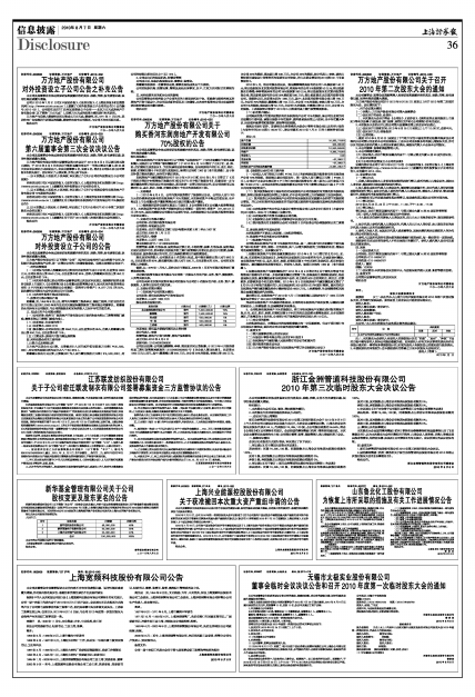 证券代码:000638 证券简称:万方地产 公告编号:2010-036