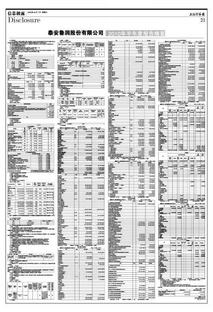 泰安鲁润股份有限公司2010年半年度报告摘要