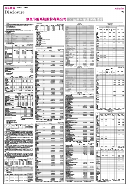 双良节能系统股份有限公司2010年半年度报告摘要