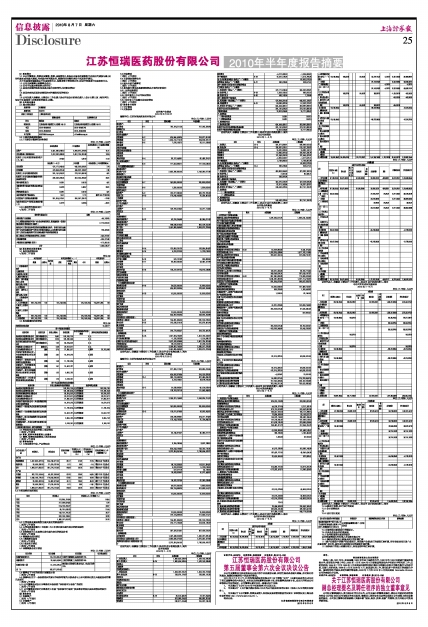 江苏恒瑞医药股份有限公司2010年半年度报告摘要