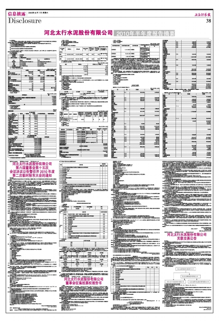 河北太行水泥股份有限公司2010年半年度报告摘要