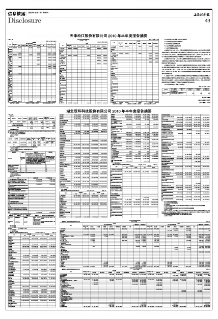 湖北双环科技股份有限公司2010年半年度报告摘要