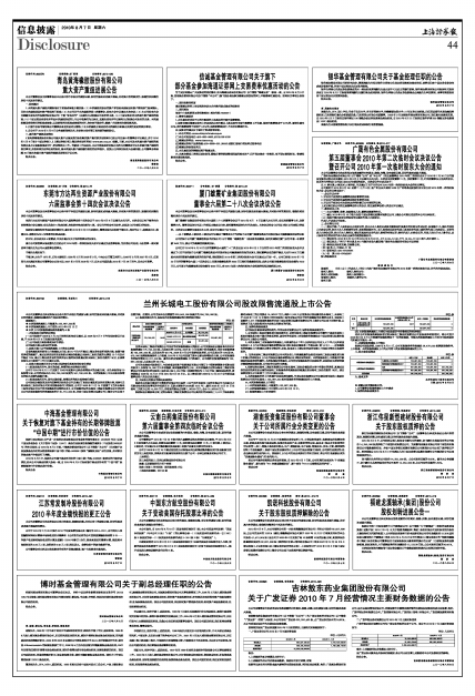 关于广发证券2010年7月经营情况主要财务数据的公告
