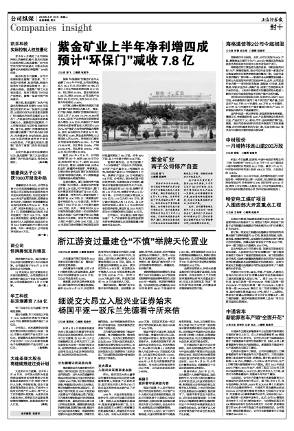 2010-08-10 来源:上海证券报 作者:⊙实习生 刘相华 记者 郑义 ○编辑 祝建华