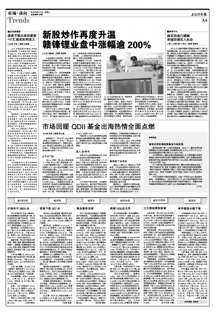 新股炒作再度升温 赣锋锂业盘中涨幅逾200%