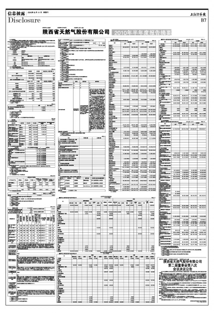 陕西省天然气股份有限公司2010年半年度报告摘要