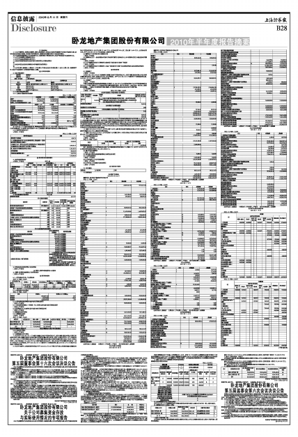 卧龙地产集团股份有限公司2010年半年度报告摘要
