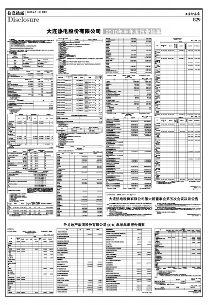 卧龙地产集团股份有限公司2010年半年度报告摘要