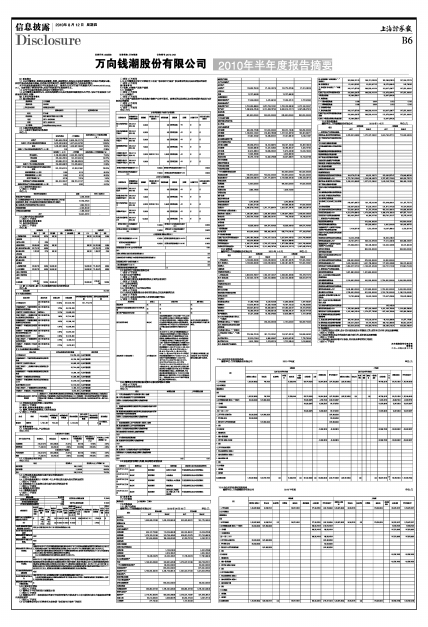 万向钱潮股份有限公司2010年半年度报告摘要