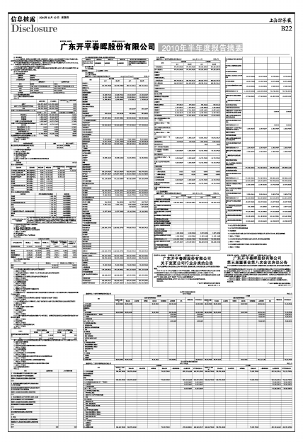 广东开平春晖股份有限公司2010年半年度报告摘要