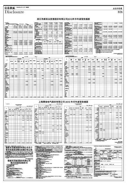 浙江伟星实业发展股份有限公司2010年半年度报告摘要
