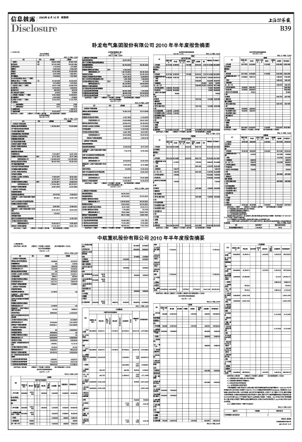 卧龙电气集团股份有限公司2010年半年度报告摘要