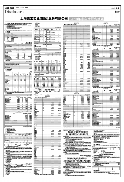 上海嘉宝实业(集团)股份有限公司2010年半年度报告摘要