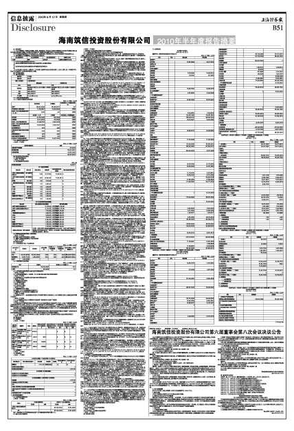 海南筑信投资股份有限公司2010年半年度报告摘要