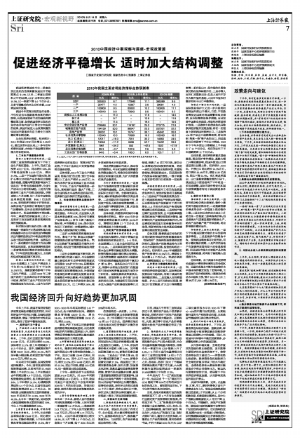 总体来看,世界经济并没有完全从金融危机的阴影中走出来,更无法马上迈入新一轮快速增长周期。下半年,应坚持宏观经济政策基本取向不变,工作重点放在进一步细化和落实已经出台的政策措施。尤其要注重全面落实房地产调控“国十条”的有关政策,增加供给和抑制不合理需求两个方面不可偏废。“国十条”中增加保障性住房和普通商品住房供给这一政策取向是用经济手段平衡未来房地产市场供求关系的关键举措。要通过增加房地产供给来稳定房地产对固定资产投资和经济增长的带动作用。要积极发挥证券市场在引导和稳定社会经济预期方面的独特作用,保持证券市场平稳健康运行。