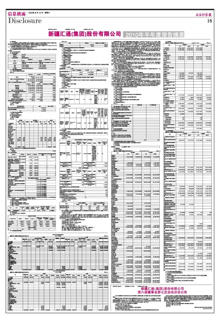 新疆汇通(集团)股份有限公司第六届董事会第七次会议于2010年8月2日以传真、电子邮件方式发出会议通知,2010年8月12日在乌鲁木齐市召开会议,会议应到董事7人,实到董事7人。公司监事和高级管理人员列席了会议,会议由董事长宋小刚先生主持。会议召开符合《公司法》和《公司章程》的有关规定。经过认真审议,会议以记名投票表决方式通过了如下决议: