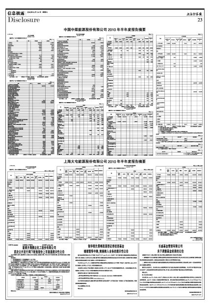 上海大屯能源股份有限公司2010年半年度报告摘要