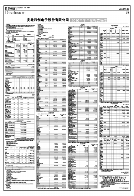 安徽四创电子股份有限公司第四届董事会第三次会议于2010年8月12日以通讯方式召开,会议应到董事9名,实到董事9名,符合《公司法》和《公司章程》的有关规定。会议审议并通过了以下事项: