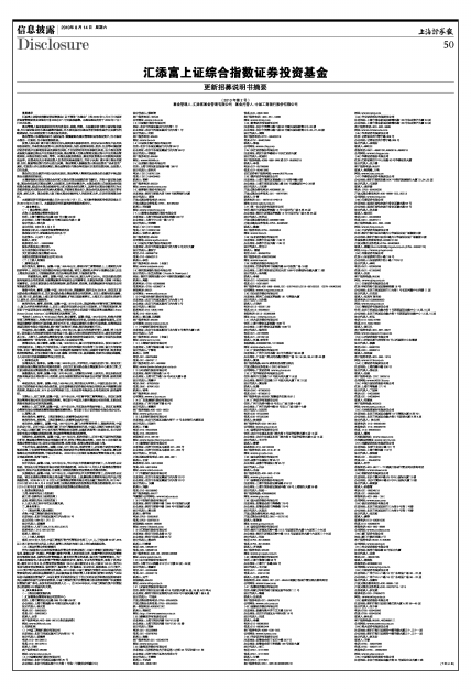汇添富上证综合指数证券投资基金更新招募说明书摘要