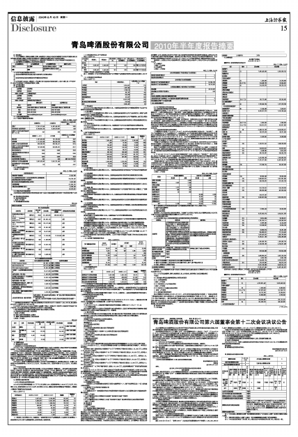 青岛啤酒股份有限公司2010年半年度报告摘要