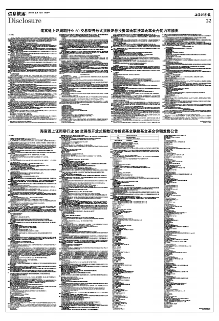 海富通上证周期行业50交易型开放式指数证券投资基金联接基金基金合同内容摘要