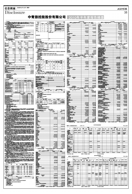 中青旅控股股份有限公司2010年半年度报告摘要